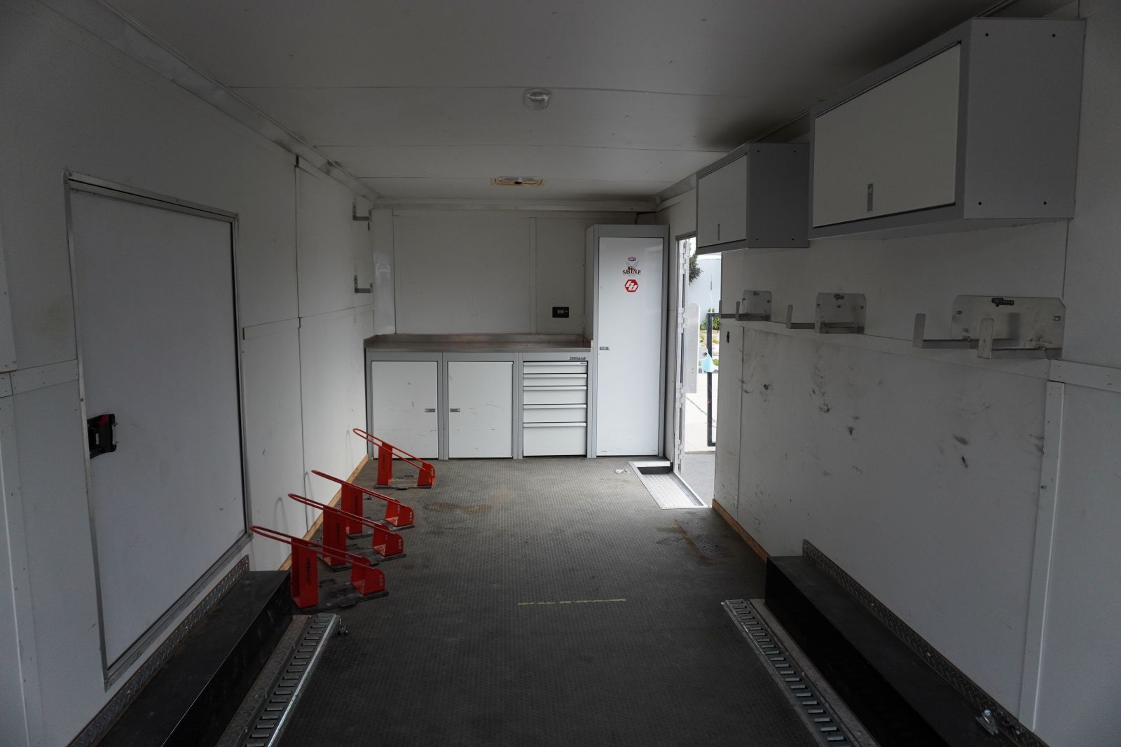 24' CAR HAULER WITH ESCAPE DOOR AND CABINETS