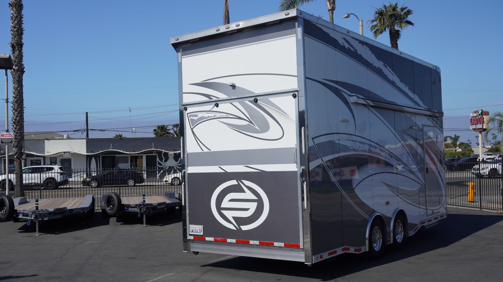 - High-End Amenities (Optional features that may be on this unit): Optioned with a fuel station, a water system with spigot and pump, a front bathroom with shower, and an awning for comfortable track-side living.