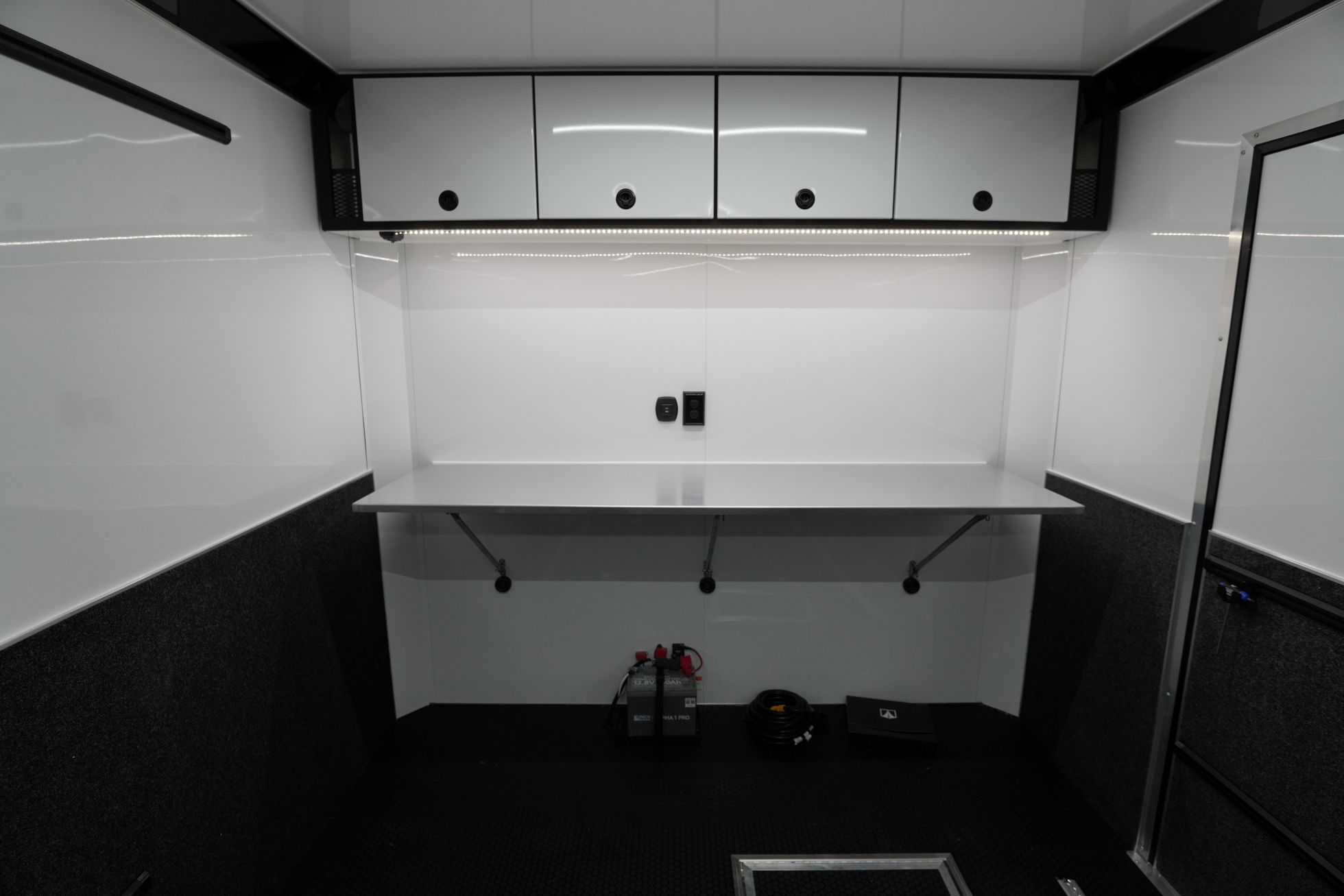 - Premium Cabinetry: Featuring a clean, professional look with Poly White Cabinets and a Cabinet Package that includes a small generator slide.