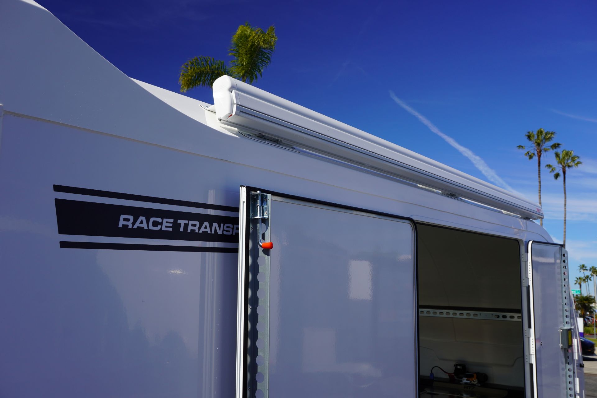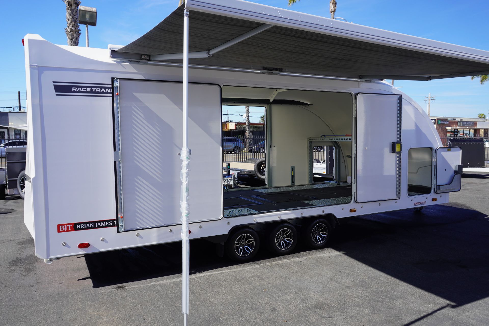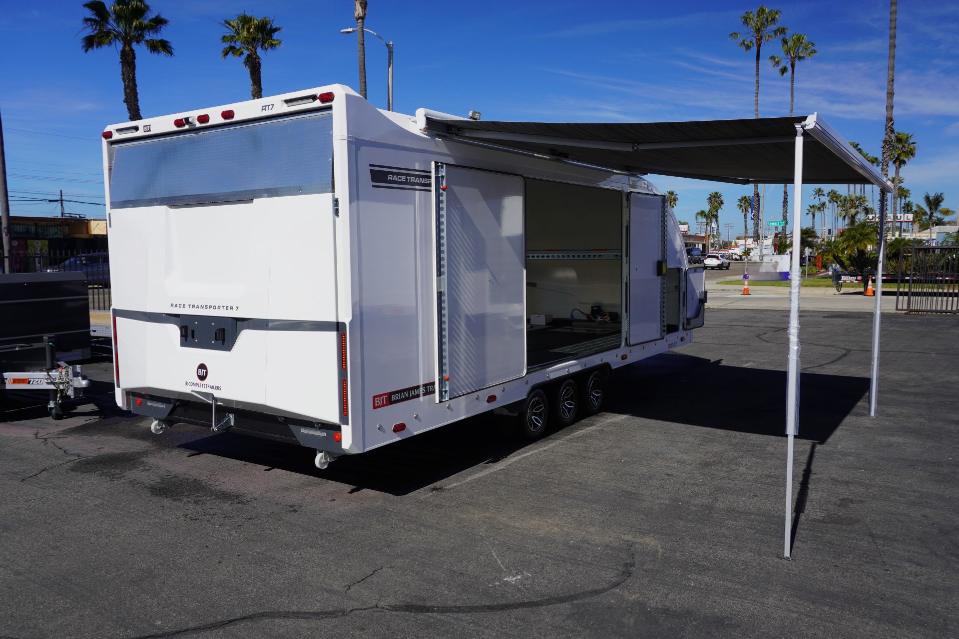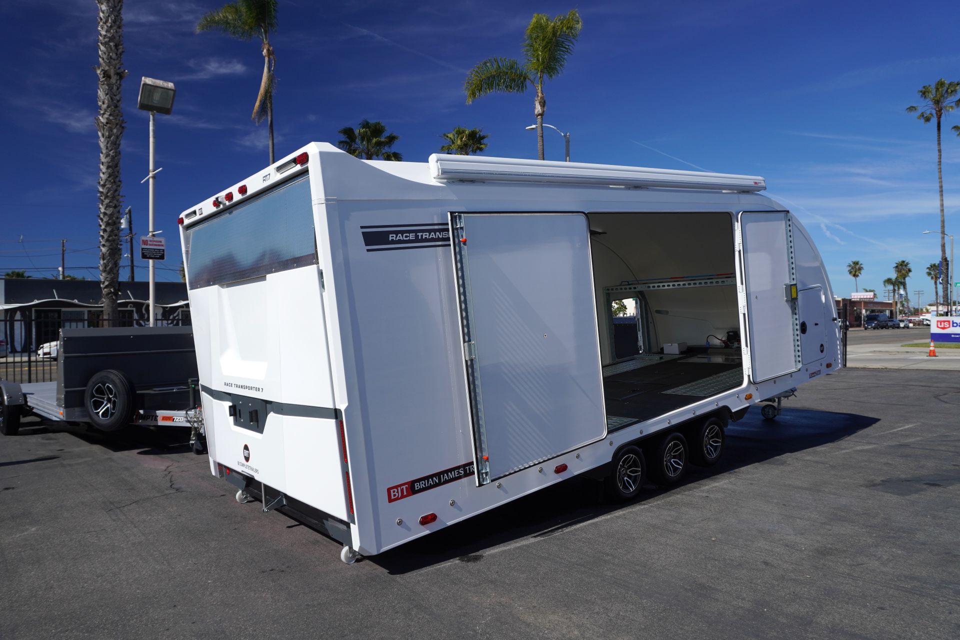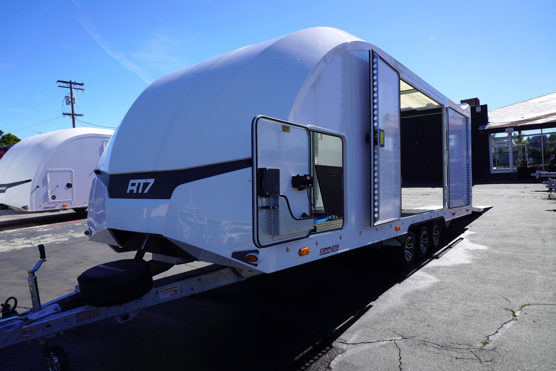 Designed for the most demanding race teams and collectors, the Race Transporter 7 (RT7) is the ultimate enclosed trailer, offering a spacious, secure, and professional transport solution. This specific unit is available in striking White and features a triple-axle chassis for superior towing performance.