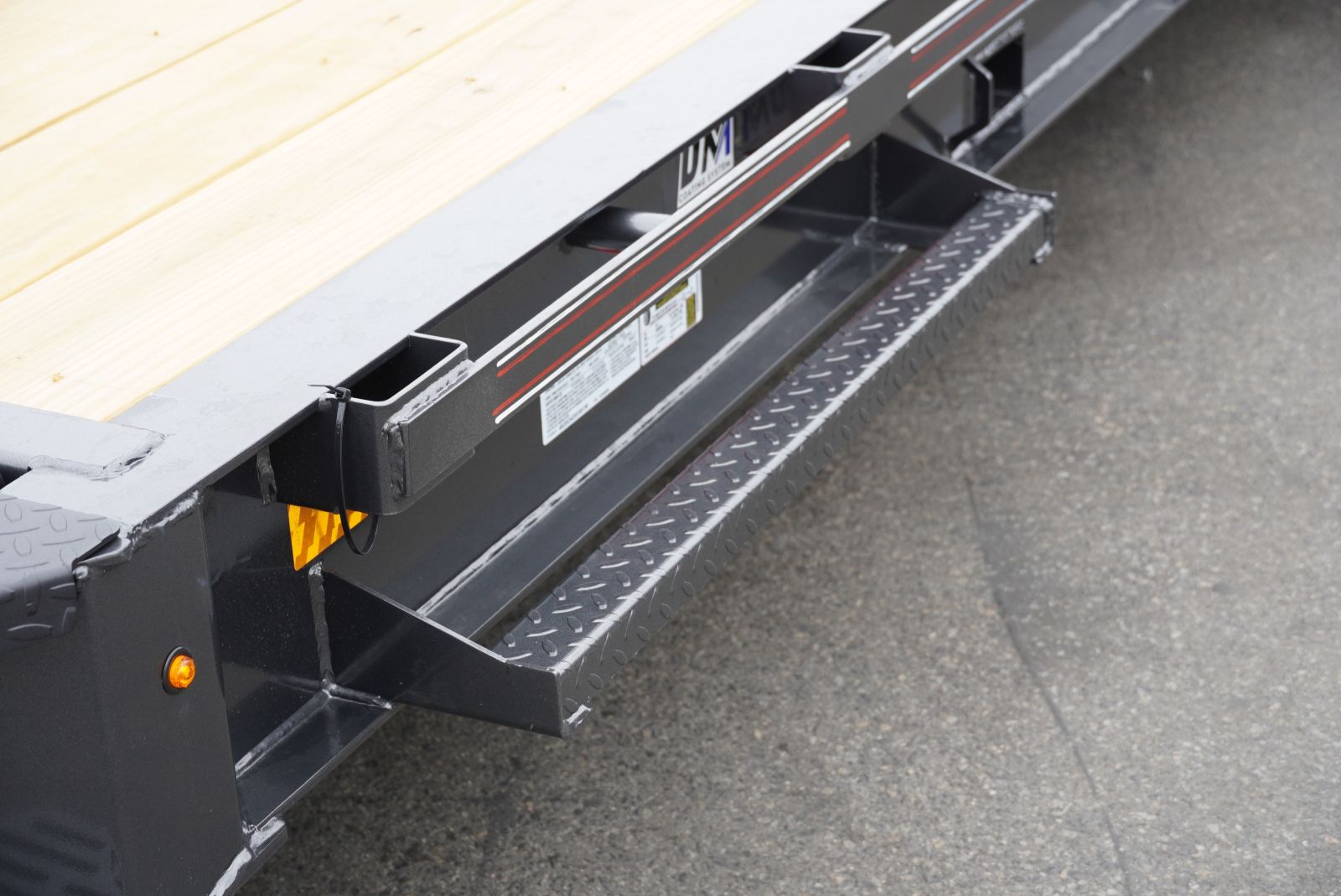 - Loading: A 24" diamond plate dovetail with cleats and extra-wide HD flip knee ramps for easy loading and unloading.
