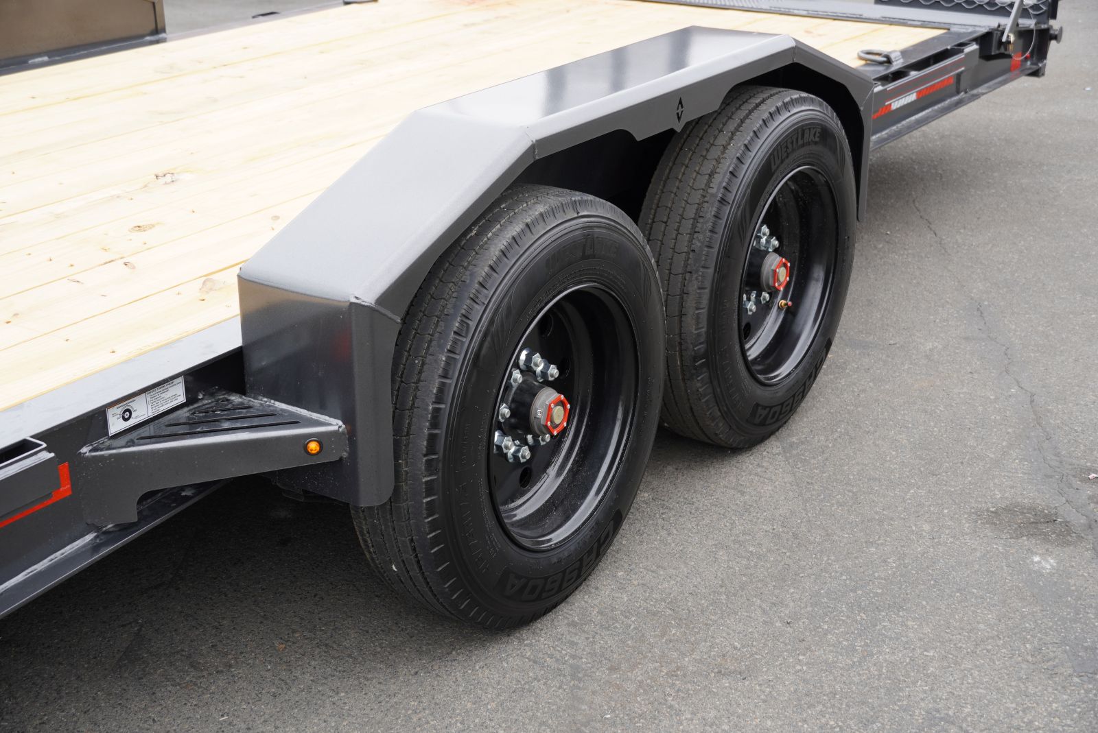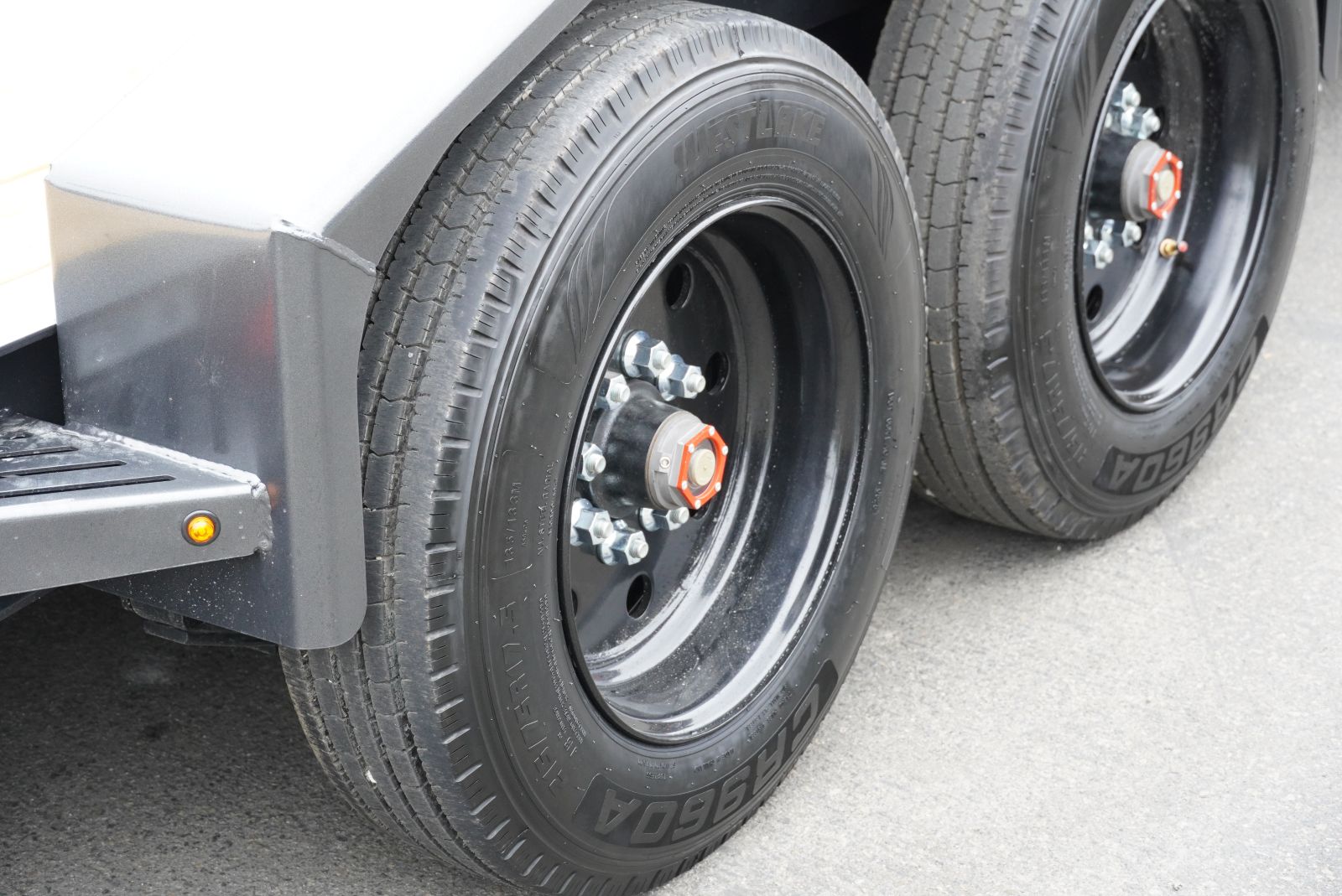 - Tires: ST215/75R17.5 single, 18-ply 865 steel black tires.