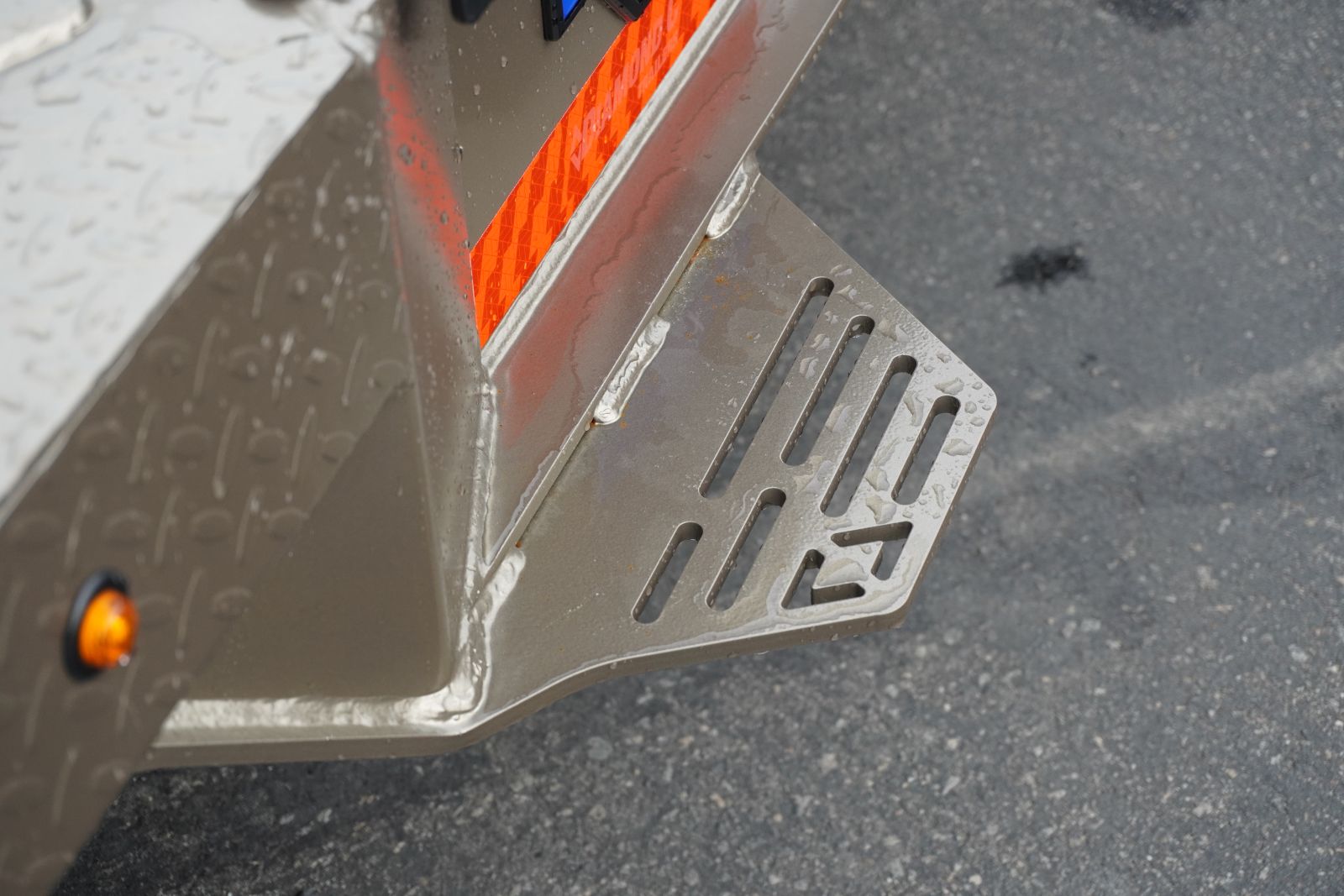 Easy & Safe Loading: Equipped with a 24" Diamond Plate Dovetail featuring cleats and Extra-Wide, HD Flip-Knee Ramps. This configuration provides a gentle loading angle and superior traction for all types of equipment.12